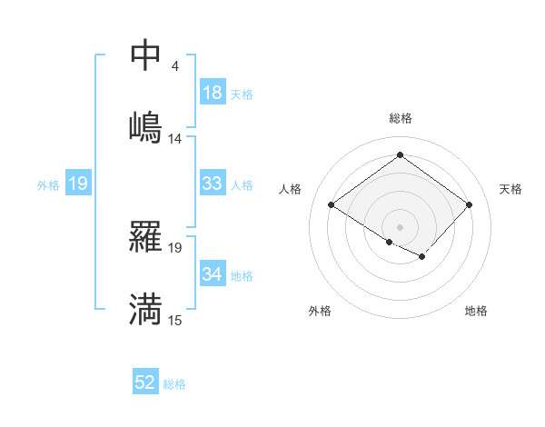中嶋 羅満さんの総格は52画の4点!
