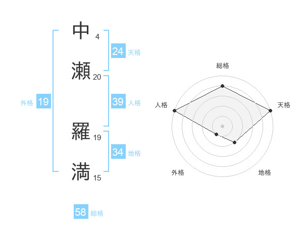 中瀬 羅満さんを姓名の画数から五運を鑑定