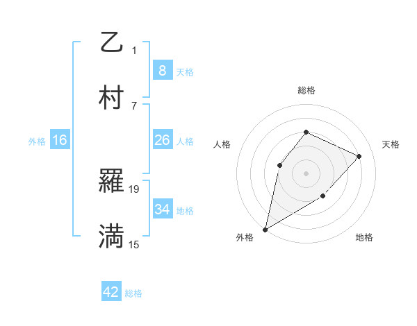 乙村 羅満さんを姓名の画数から五運を鑑定