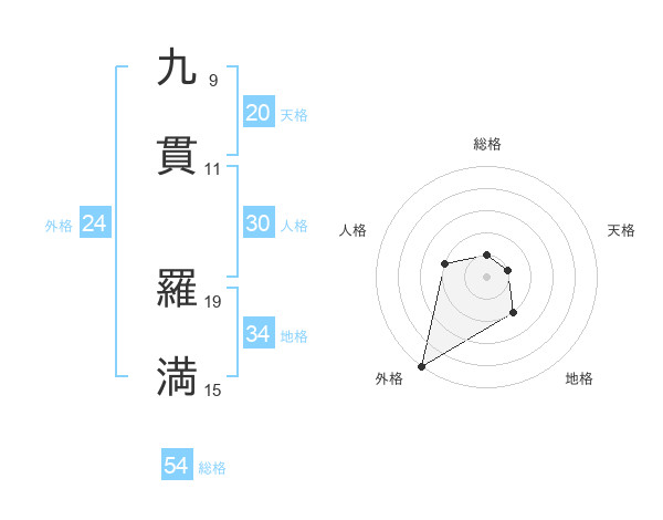九貫 羅満さんの外格は24画の5点!