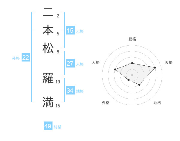 二本松 羅満さんを姓名の画数から五運を鑑定