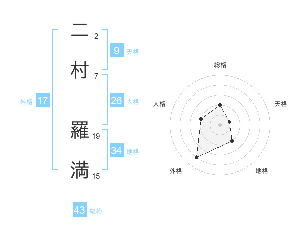 二村 羅満さんの総格は43画の2点!