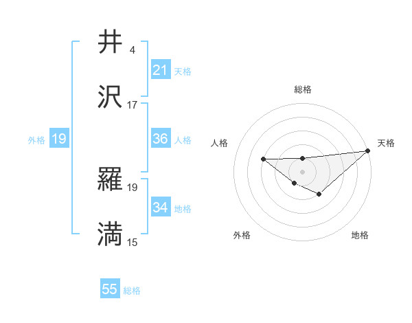 井沢 羅満さんを姓名の画数から五運を鑑定