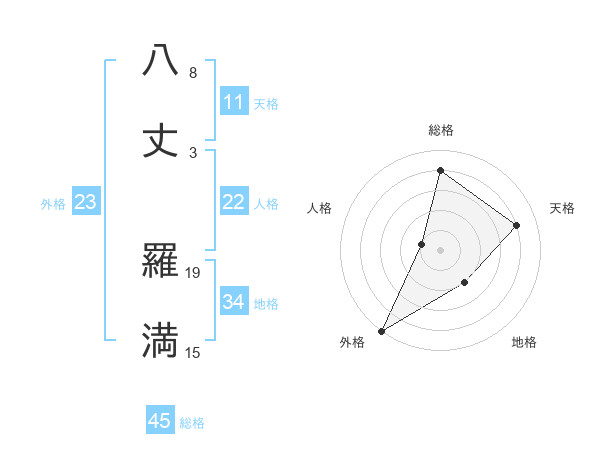 八丈 羅満さんの外格は23画の5点!