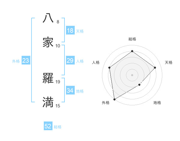 八家 羅満さんの総格は52画の4点!