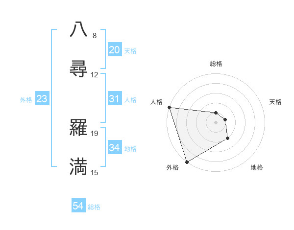 八尋 羅満さんを姓名の画数から五運を鑑定