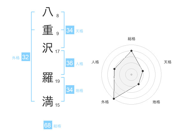 八重沢 羅満さんの総格は68画の4点!