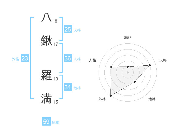 八鍬 羅満さんの外格は23画の5点!