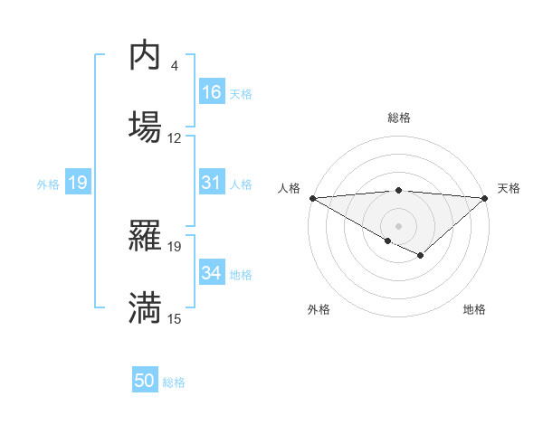 内場 羅満さんの総格は50画の2点!