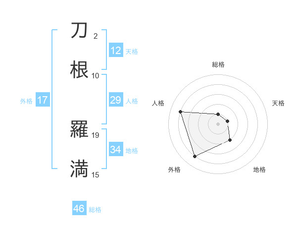 刀根 羅満さんを姓名の画数から五運を鑑定
