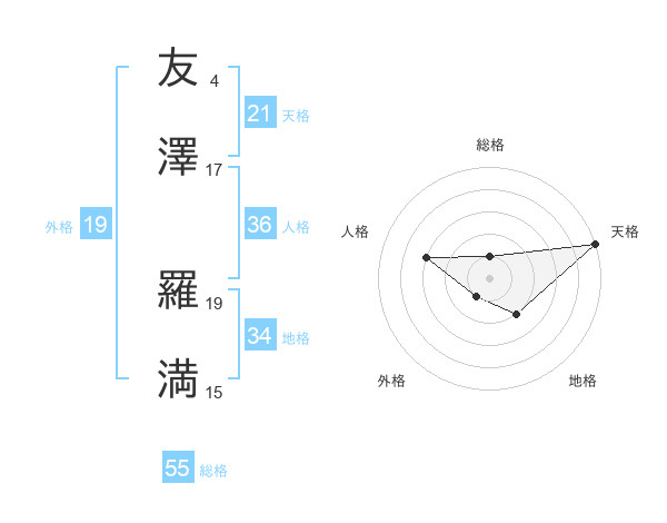 友澤 羅満さんの天格は21画の5点!