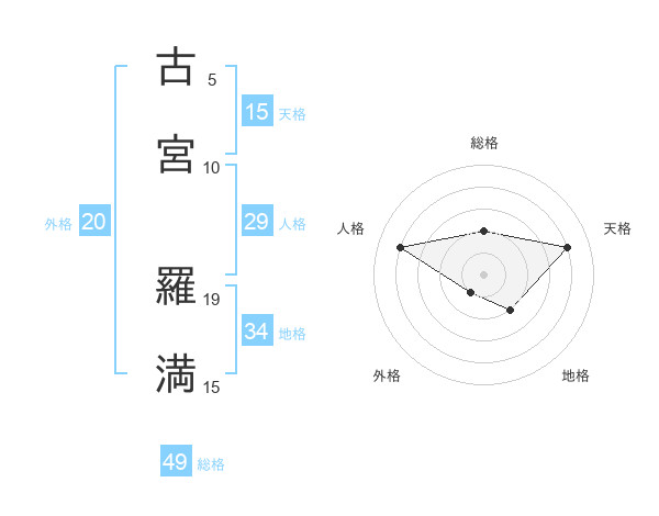 古宮 羅満さんを姓名の画数から五運を鑑定