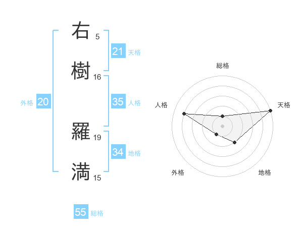 右樹 羅満さんを姓名の画数から五運を鑑定