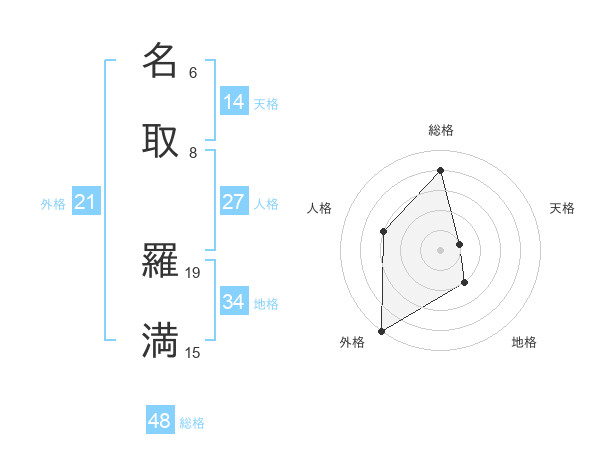 名取 羅満さんの総格は48画の4点!