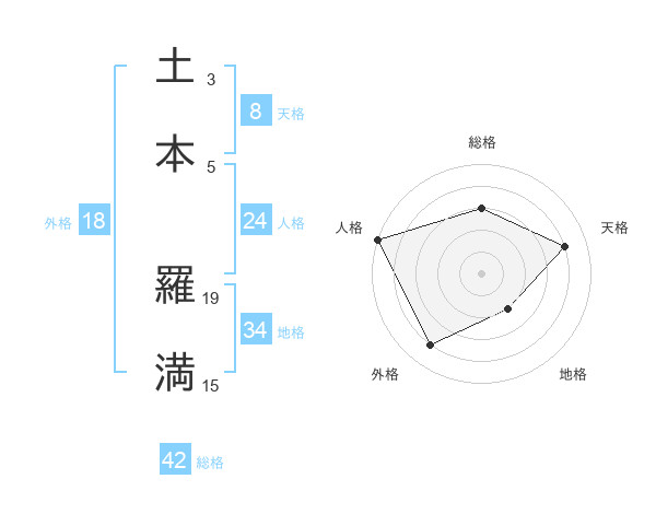 土本 羅満さんの天格は8画の4点!