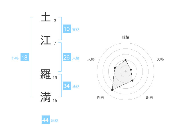 土江 羅満さんの総格は44画の2点!