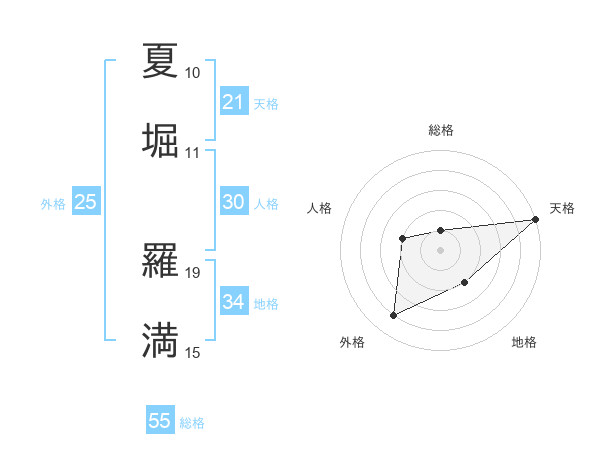 夏堀 羅満さんの天格は21画の5点!