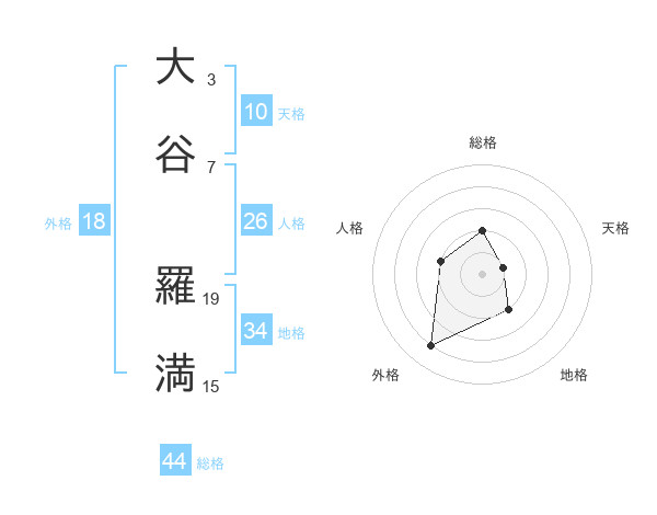 大谷 羅満さんの総格は44画の2点!