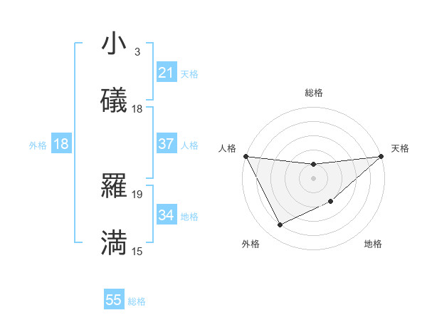 小礒 羅満さんの総格は55画の1点!