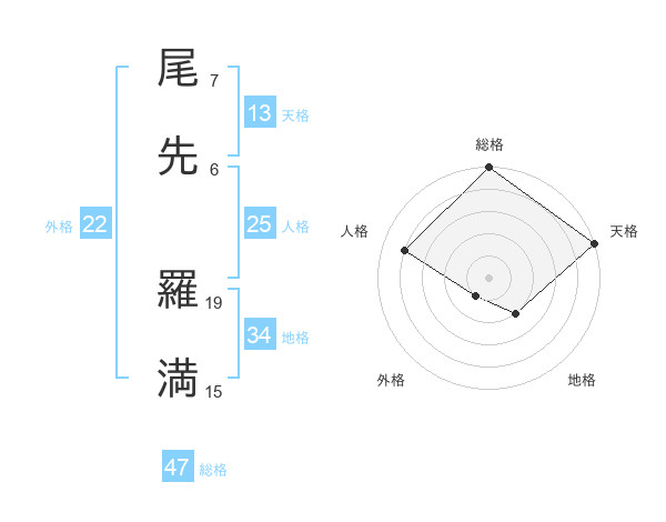 尾先 羅満さんを姓名の画数から五運を鑑定