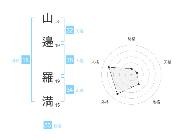 山邉 羅満さんを姓名の画数から五運を鑑定
