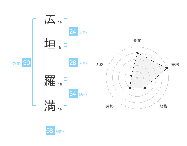 広垣 羅満さんを姓名の画数から五運を鑑定