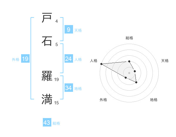 戸石 羅満さんを姓名の画数から五運を鑑定