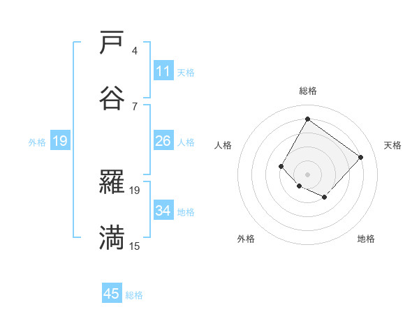 戸谷 羅満さんの総格は45画の4点!