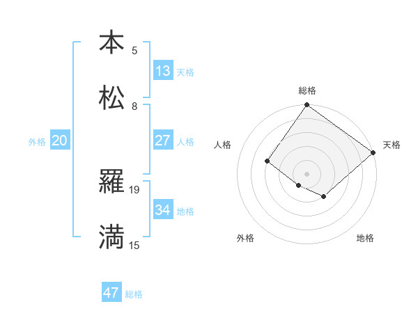 本松 羅満さんの総格は47画の5点!