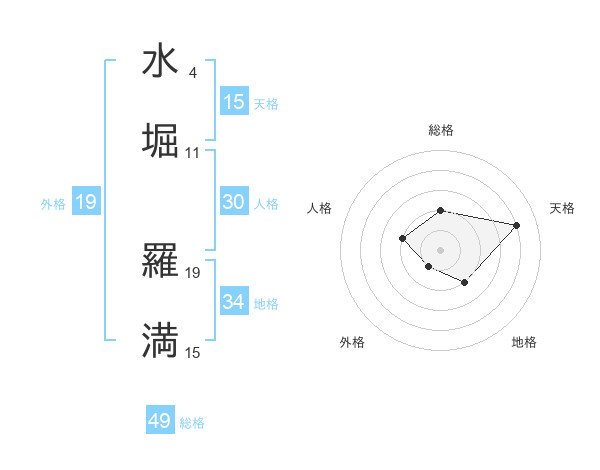 水堀 羅満さんの総格は49画の2点!