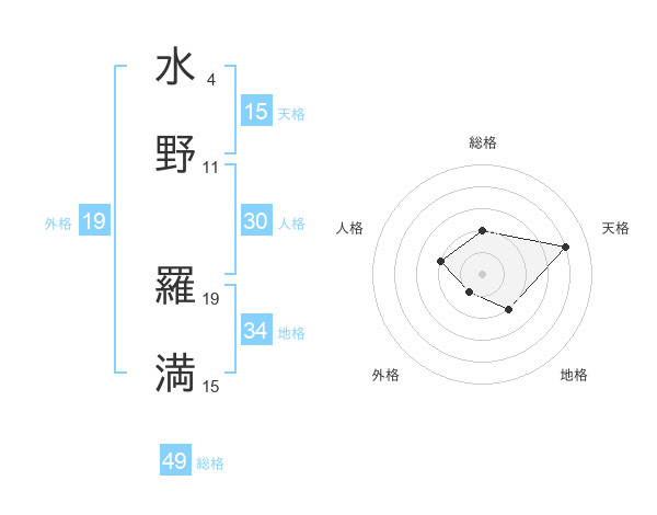水野 羅満さんの総格は49画の2点!
