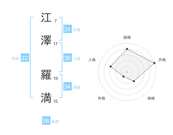 江澤 羅満さんの総格は58画の4点!