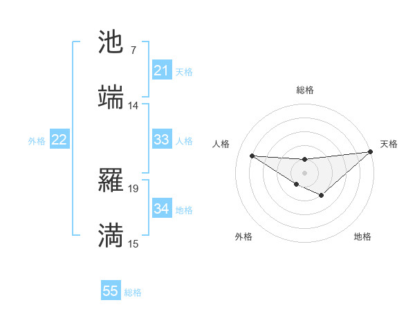 池端 羅満さんの総格は55画の1点!