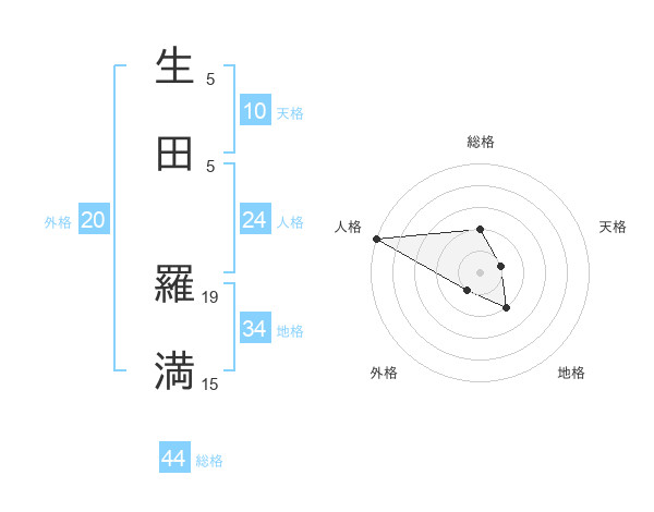 生田 羅満さんの総格は44画の2点!