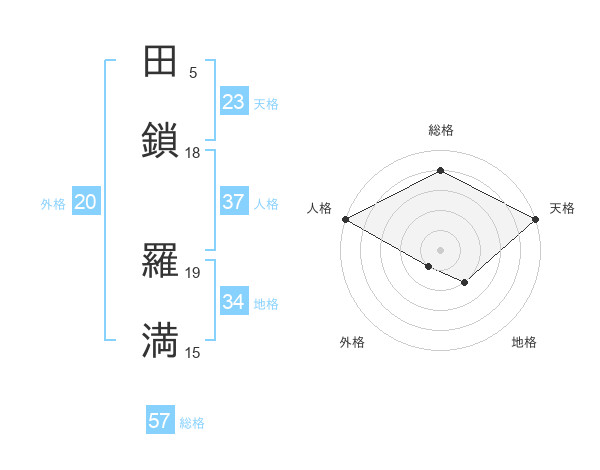 田鎖 羅満さんの総格は57画の4点!