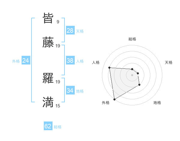 皆藤 羅満さんの外格は24画の5点!