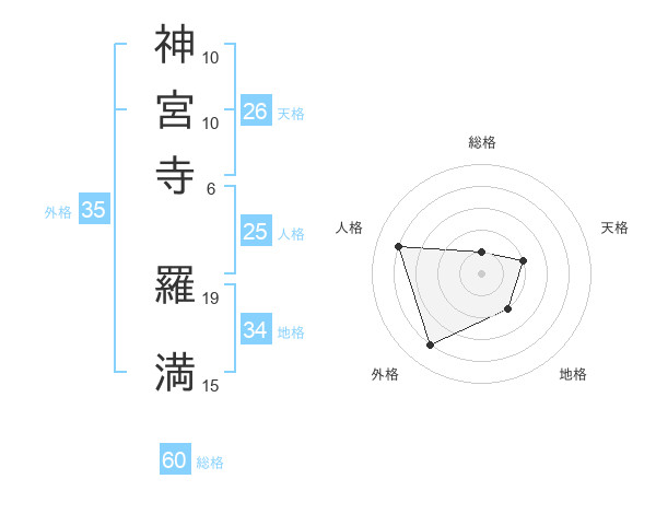 神宮寺 羅満さんを姓名の画数から五運を鑑定