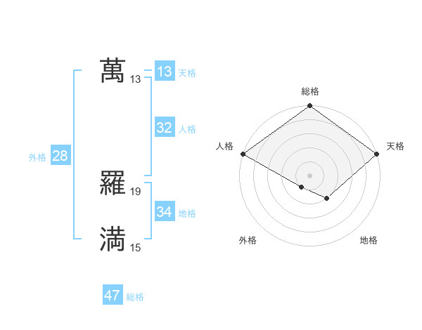 萬 羅満さんの総格は47画の5点!