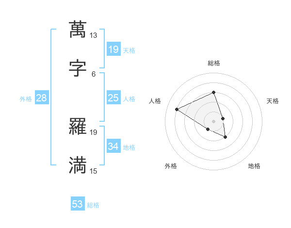 萬字 羅満さんの総格は53画の3点!