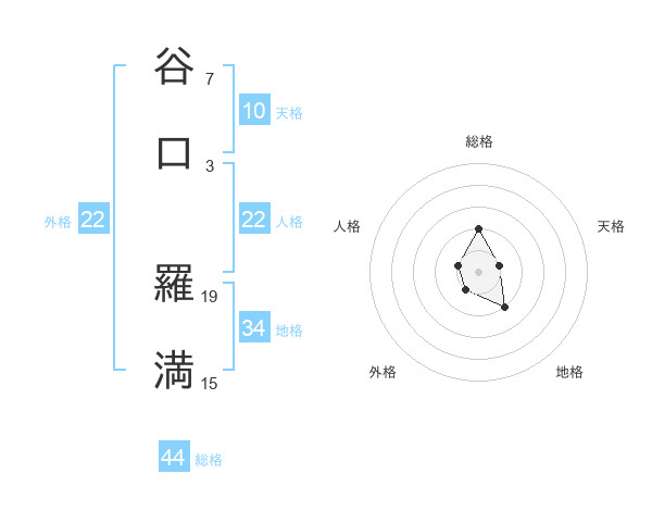 谷口 羅満さんの総格は44画の2点!