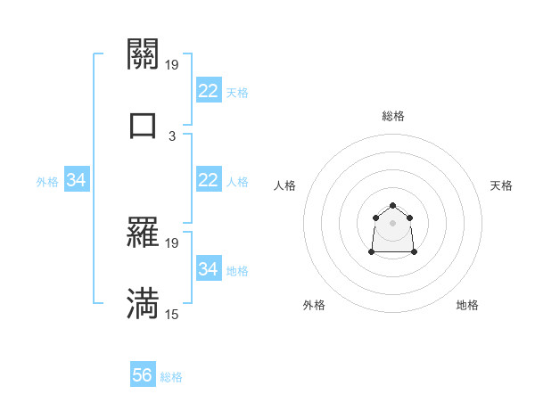 關口 羅満さんの天格は22画の1点!