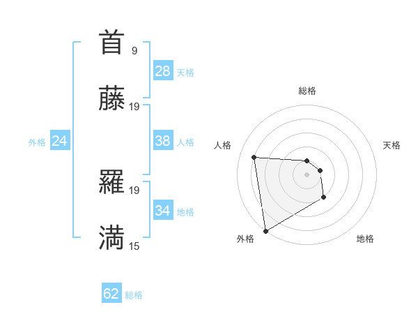 首藤 羅満さんを姓名の画数から五運を鑑定