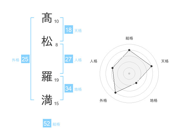 髙松 羅満さんの総格は52画の4点!