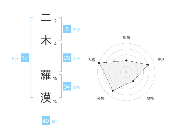二木 羅漢さんを姓名の画数から五運を鑑定