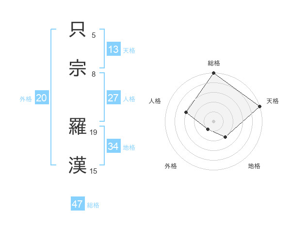 只宗 羅漢さんの総格は47画の5点!
