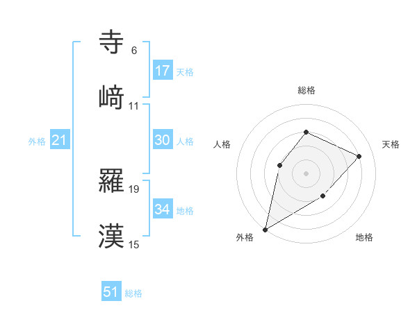 寺﨑 羅漢さんの総格は51画の3点!