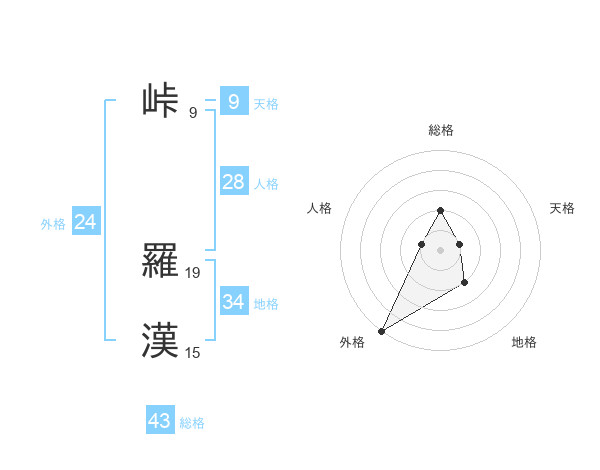 峠 羅漢さんの外格は24画の5点!