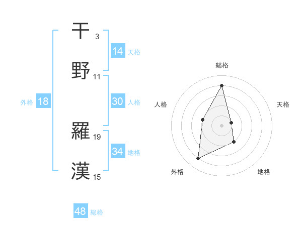 干野 羅漢さんを姓名の画数から五運を鑑定