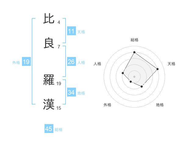 比良 羅漢さんの総格は45画の4点!
