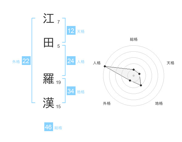 江田 羅漢さんの外格は22画の1点!